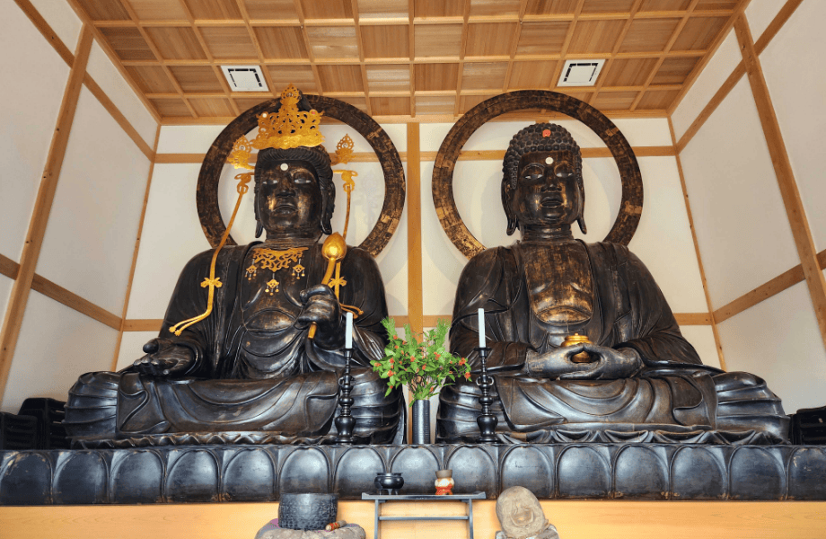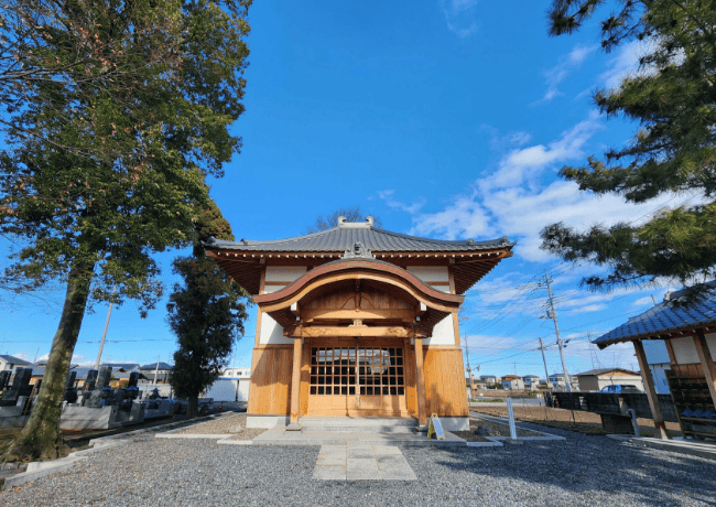 正保年間に創建されたと言われるお寺。本堂に祀られる「平戸の大仏(おおぼとけ)」は熊谷市指定有形文化財です。ぴったりと並んで鎮座する薬師如来坐像、観世音菩薩坐像の組み合わせは珍しく、高さ約4mもの木像寄木造の仏像は全国的に見ても稀なのだそう。 昔、仏像の胎内から神経痛や目薬の秘伝書が発見されたとの言い伝えがあり、病気平癒を願う参拝客も多かったとか。2019年から約5年かけ、本堂および仏像の大修理を行いました。 ※月2回一般公開あり(毎月第一日曜日と第三日曜日 10時〜12時)