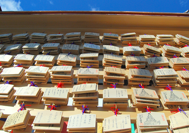 平安時代、寺の北に位置する観音山に千手観音菩薩を祀ったのが始まりとされ、かの空海も訪れたとされています。秘仏本尊の厄除け金色大師と開運金色大師の二体の大師像を日本で唯一同時に祀っており、厄除け・ 開運・方位除けのご利益は日本随一と言われています。このため、日本三大厄除け開運大師のひとつに数えられ、年間を通して全国から多くの参拝者が祈願に訪れます。切り絵御朱印発祥の地としても有名で、季節ごとの御朱印は特に人気があります。