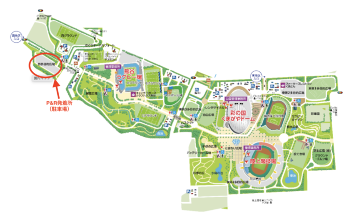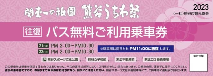 バス無料乗車券は熊谷スポーツ文化公園臨時駐車場(西多目的広場)で配布いたします。