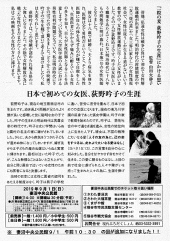 『一粒の麦 荻野吟子の生涯』9/1(日)試写会の前売りチケットを発売中!