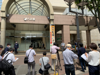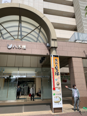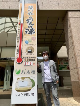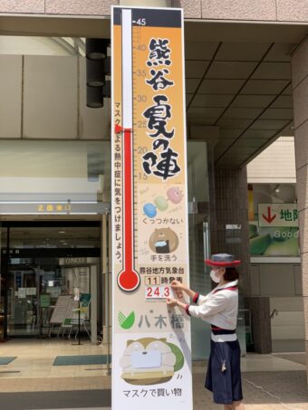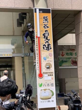 5月14日(金)10時45分、日本一あつい街を象徴する大温度計が市内の百貨店「八木橋」に今年も設置されました。