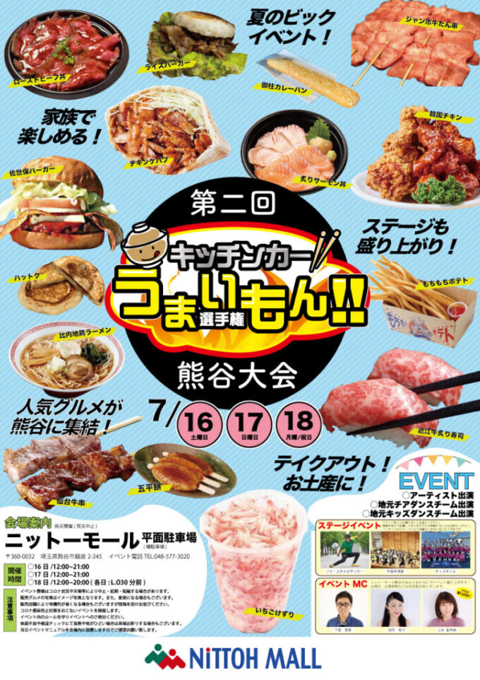 2020年11月に開催され、2日間で約15,000人の入場者が集まった「キッチンカーうまいもん!選手権」が今年も以下の日程で開催されます!