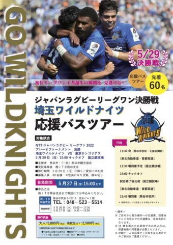 ジャパンラグビーリーグワン決勝戦ワイルドナイツ応援ツアーを実施します!!