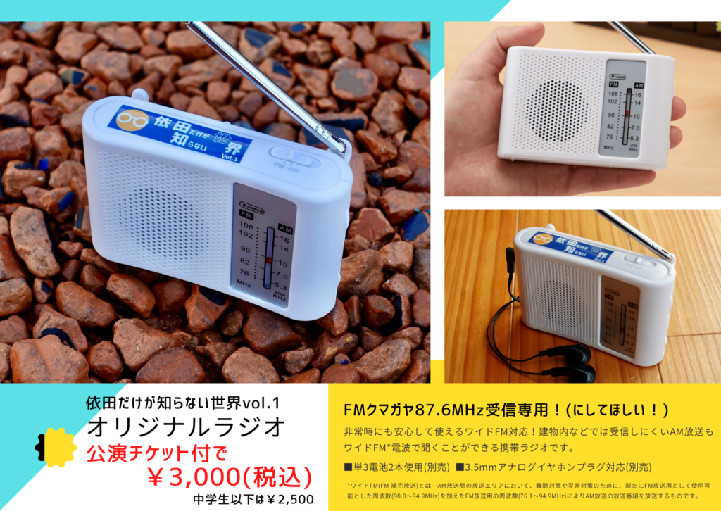 オリジナル小型ラジオが付いてくる公演チケットです。