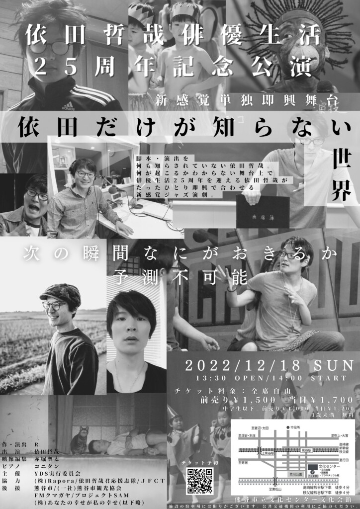 当協会職員、俳優、歌手、ラジオパーソナリティ等々、マルチな才能を持ち八面六臂の活躍をみせている依田哲哉が、たった独り即興で合わせる新感覚ジャズ演劇『依田だけが知らない世界vol.1』が開催されます。