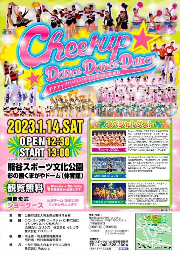 県内外からチアダンサーが集結するイベント「Cheer up!!Dance!Dance!Dance! @Kumagaya2023」が3年ぶりに開催されます!