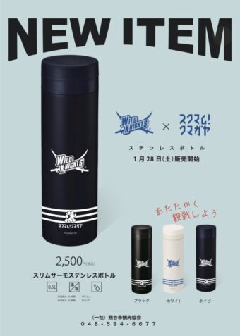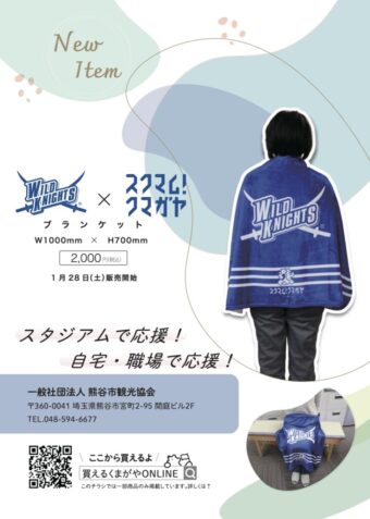 スクマム!クマガヤと埼玉ワイルドナイツがコラボレーションした、新商品の「サーモステンレスボトル」と「ブランケット」が登場します。