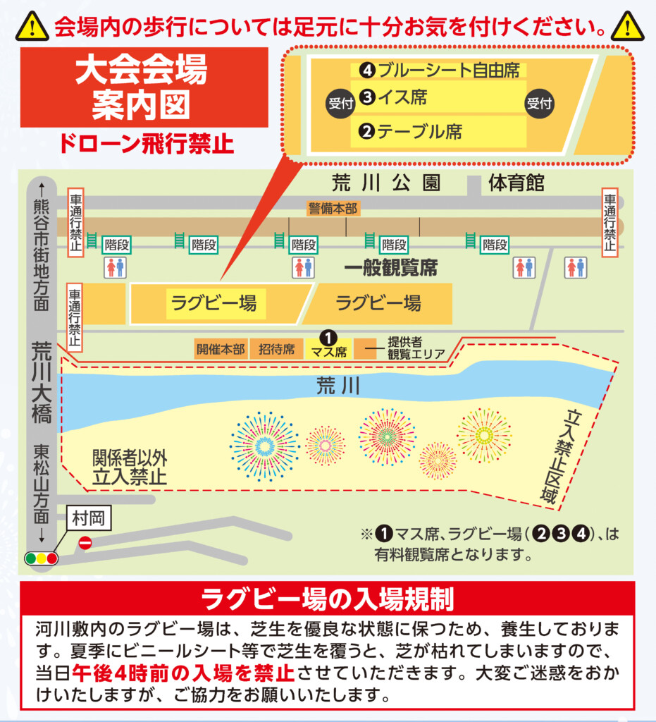 ☆有料観覧席エリア内にあります。地図上の①②③④が各種観覧席エリアです。