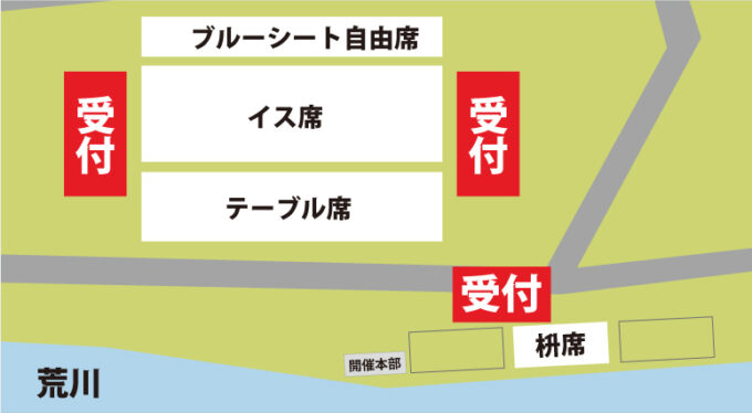 ブルーシート・イス・テーブル席:ラグビー場ゴールポスト東側(地図の右側)