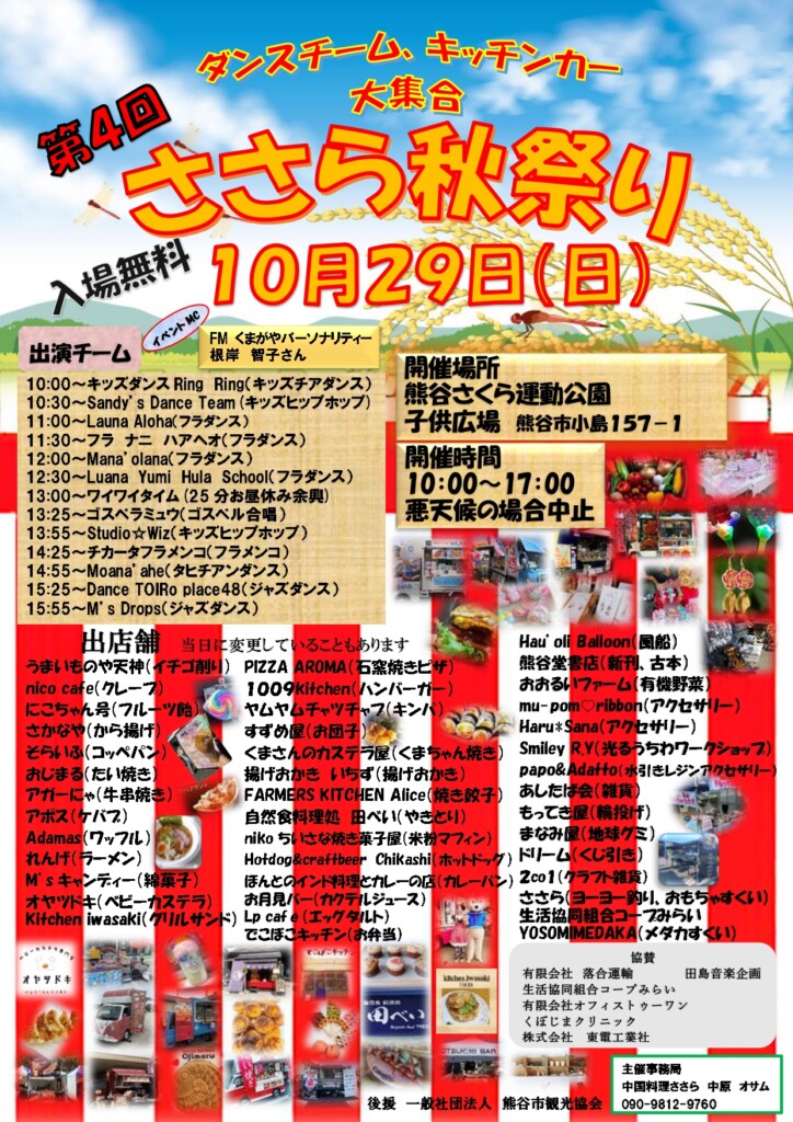 内 容  ダンスチーム出演、キッチンカー出店 など