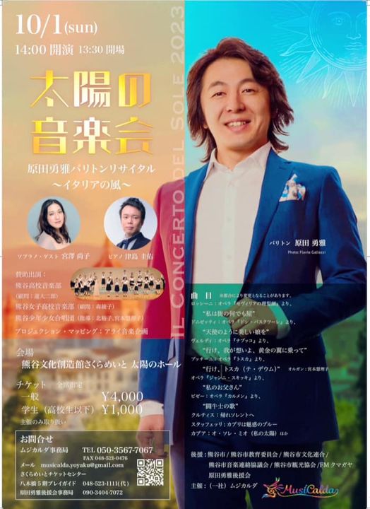熊谷市出身のオペラ歌手、原田勇雅さんのリサイタルが熊谷文化創造館さくらめいと 太陽のホールにて開催されます!