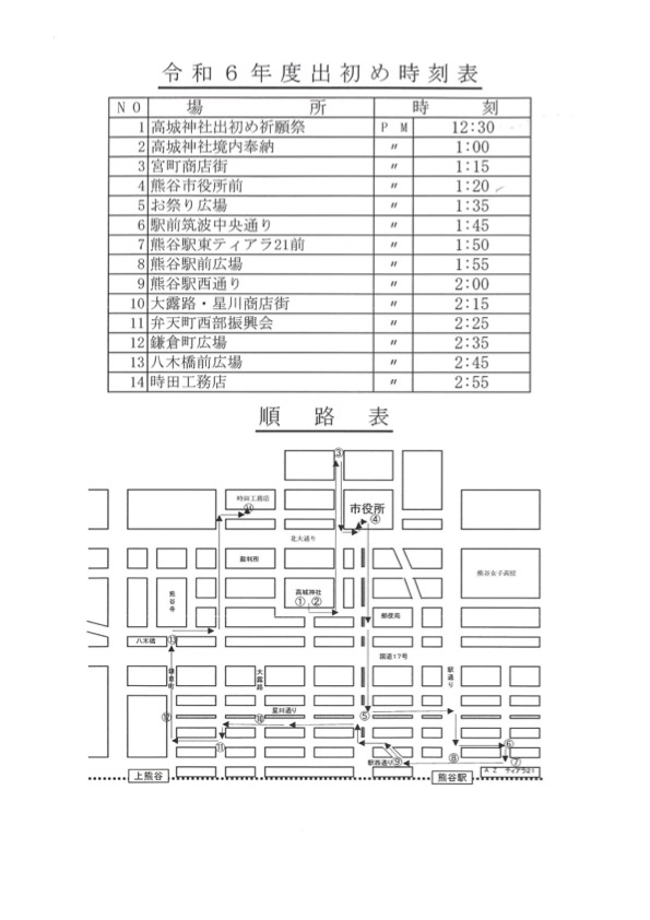 ※時刻、順路等の詳細はこちら令和6年度出初め時刻表