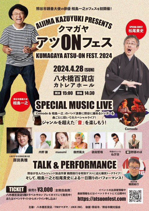 熊谷市親善大使の俳優 相島一之さんが、地元熊谷でエンタメフェスを開催します!