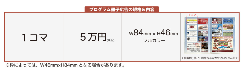 花火大会の開催に合わせて、ご協賛いただいた広告を掲載する大会プログラム冊子は8月に市内全戸配布されます。広告宣伝・イメージアップにいかがでしょうか。