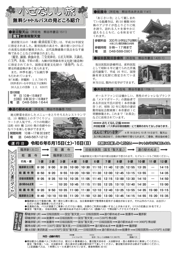 6/15(土)・16(日)『無料シャトルバスで行く 小さないい旅』を開催します。