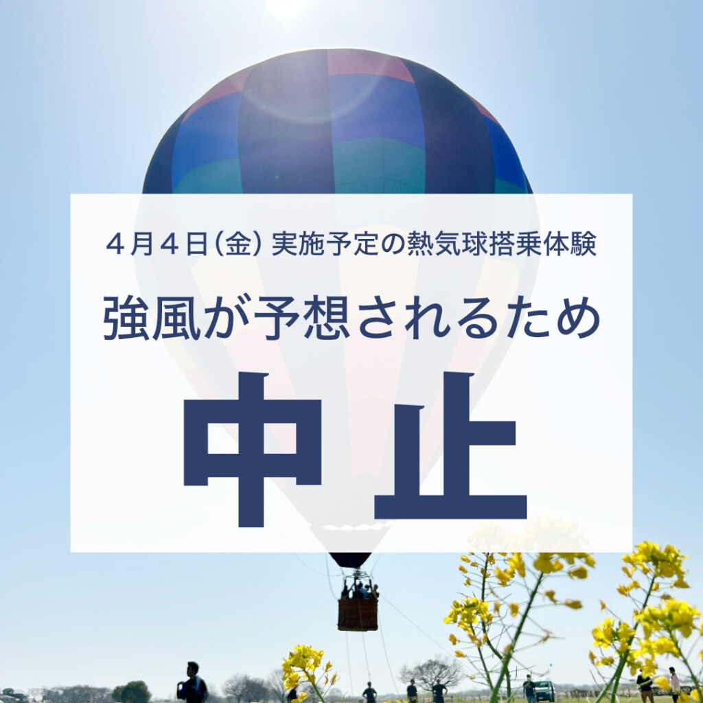 【4月4日(金)】熱気球搭乗体験中止のお知らせ