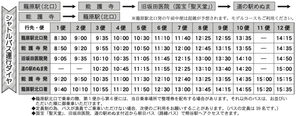 籠原駅から妻沼方面への無料シャトルバスを運行します。