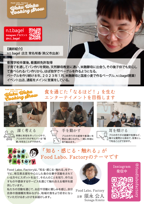 熊谷市で人気の「n.t.bagel」による、天然酵母を使ったベーグル作りの料理教室が開催されます!