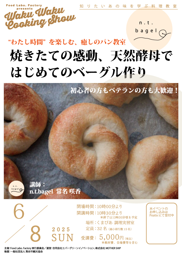 【6月8日(日)開催】WAKUWAKU COOKING SHOW Vol.8『焼き立ての感動!天然酵母で始めるベーグル作り』