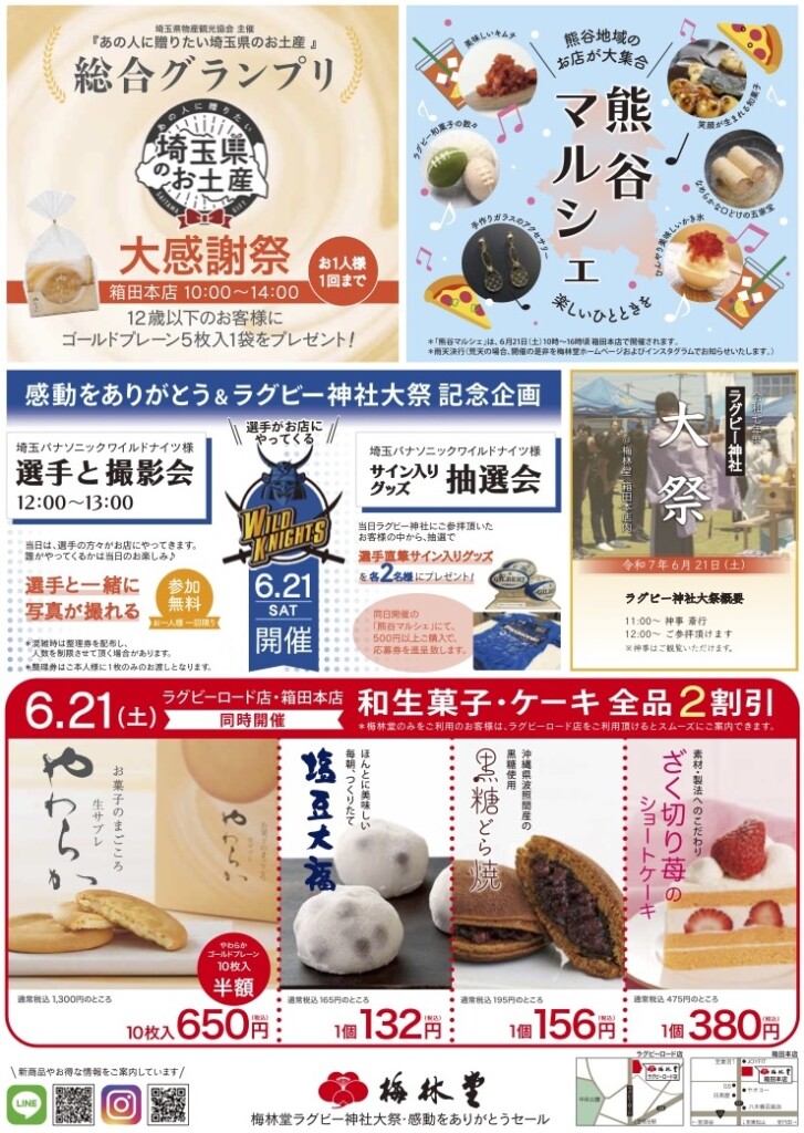 今年も梅林堂箱田本店にて、埼玉パナソニックワイルドナイツ感謝イベントが開催されます。