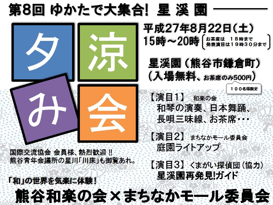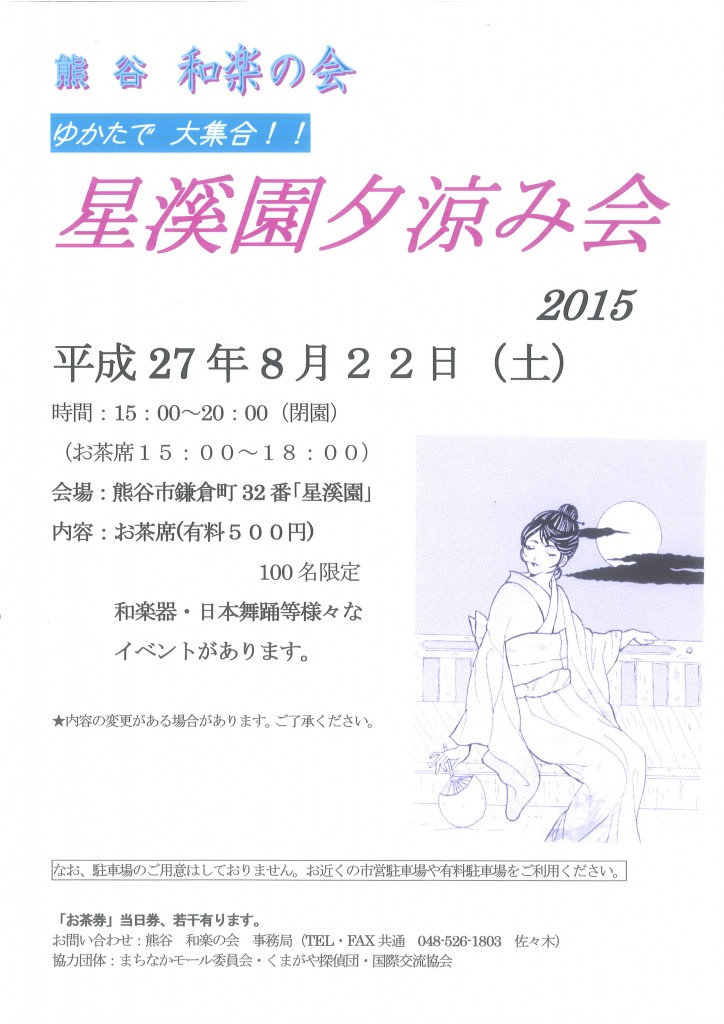 ここが熊谷!? ・・・ゆかたで大集合!! 「星渓園 夕涼み会」を開催します。