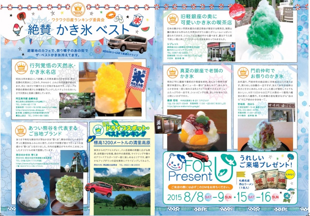 「雪くま」が絶賛かき氷として、日産自動車/日産東京販売会社グループのダイレクトメール8月号にて紹介されました。
