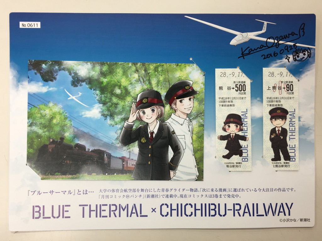 9月25日(日)に秩父鉄道熊谷駅にて行われた、グライダー漫画「ブルーサーマル」作家・小沢かな先生のサイン会、そしてSLブルーサーマル号の出発に立ち会ってきました。