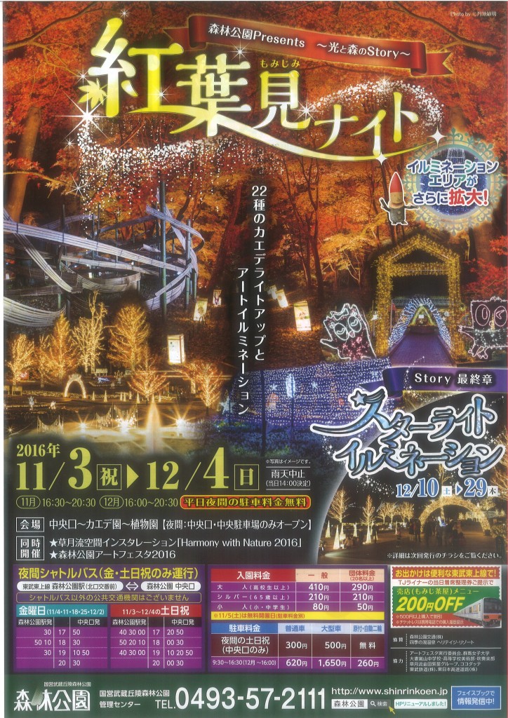 週末、どこ行く ?・・・そこは「森林公園の紅葉見ナイト」でしょ。