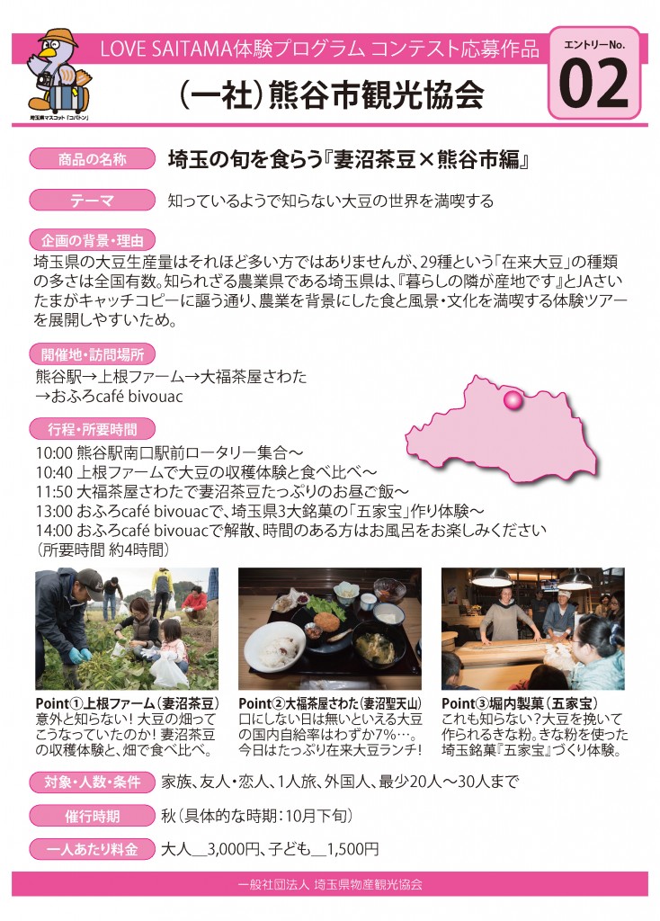 その一環として県内の体験プログラムを一堂に集め、魅力を競う『LOVE SAITAMA 体験プログラムコンテスト』が行われ、当協会が昨年10月に実施した「埼玉の旬を喰らうプロジェクト『妻沼茶豆×熊谷市』編」が、初代グランプリに輝きました!