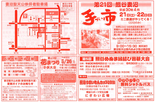 18日午後、稚児行列、奉納相撲大会、民謡流し、武州天野流妻沼太鼓等の