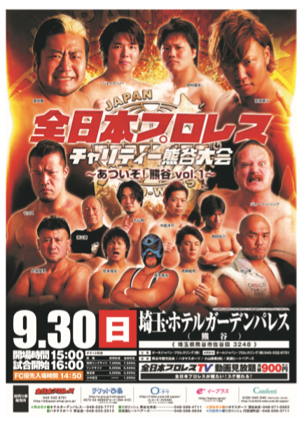 みなさん、9月30日(日)の全日本プロレスチャリティー熊谷大会に是非、お越しください!!!