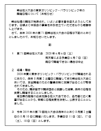 2020年 花火大会開催日程について