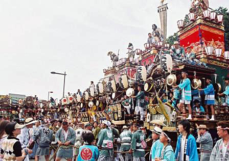 第二次世界大戦中に一時中止となりましたが、終戦翌年の昭和21年から復活し、熊谷うちわ祭は年々盛大になり、旧市街地の8ヶ町は、本石・石原・伊勢町・桜町をあわせて12ヶ町となり、山車・屋台のあの勇壮な熊谷囃子は人々の心を躍らせます。