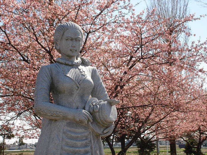 原名『河津桜』は熊谷市(旧妻沼町)出身の日本公許登録女医第1号である荻野吟子女史生誕の3月3日頃に見頃になることからから吟子桜と呼ばれ親しまれています。