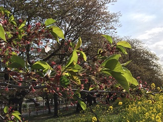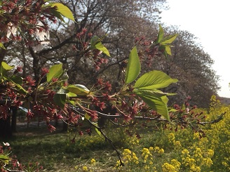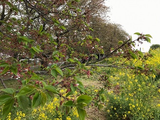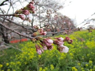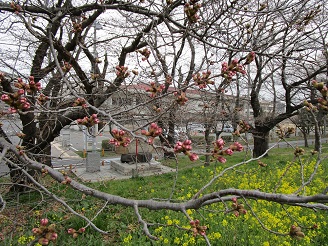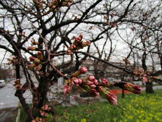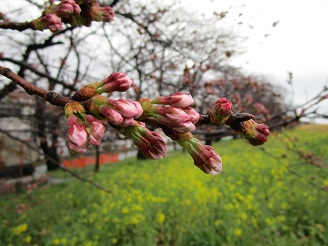まだ蕾の状況で、3月22日頃に開花という予想になっています。菜の花はもう咲き始めました。
