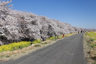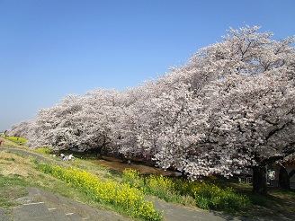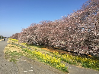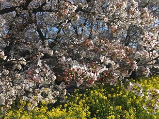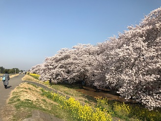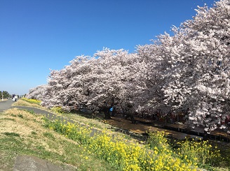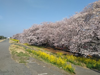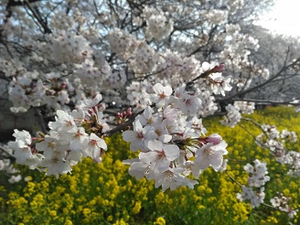 熊谷桜堤、満開の桜と満開の菜の花が咲き誇り見頃を迎えています。