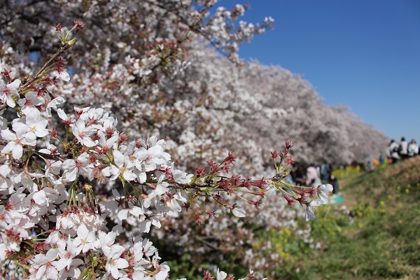 熊谷桜堤は多くの花見客で賑わっています。